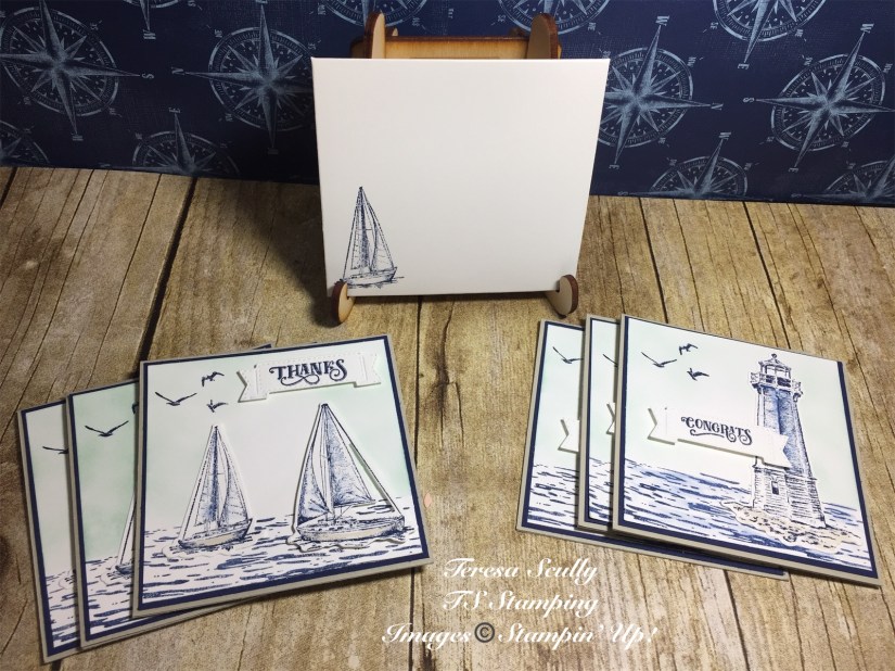 To make each card you will need a piece of cardstock that measures 7 by 3 1/2 and fold each one in half. The box will hold six cards and envelopes. The next layer measures at 3 3/8 by 3 3/8 and the whisper white measures at 3 1/4 by 3 1/4. The inside layer is 3 3/8 by 3 3/8.