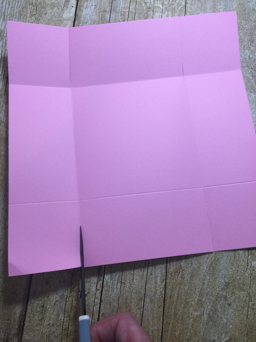 Once you are done cutting you will put tear and tape on the short ends and fold the ends up and attach to the larger piece of paper.  The same method is used to create to top of the box. Make sure you use a good adhesive to hold the box together.